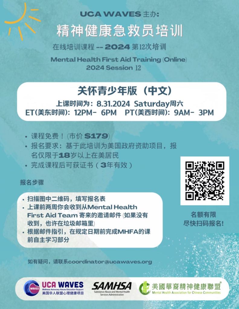 Saturday, August 31 9-3 PST in Mandarin Chinese: Scan barcode in the poster to register.
