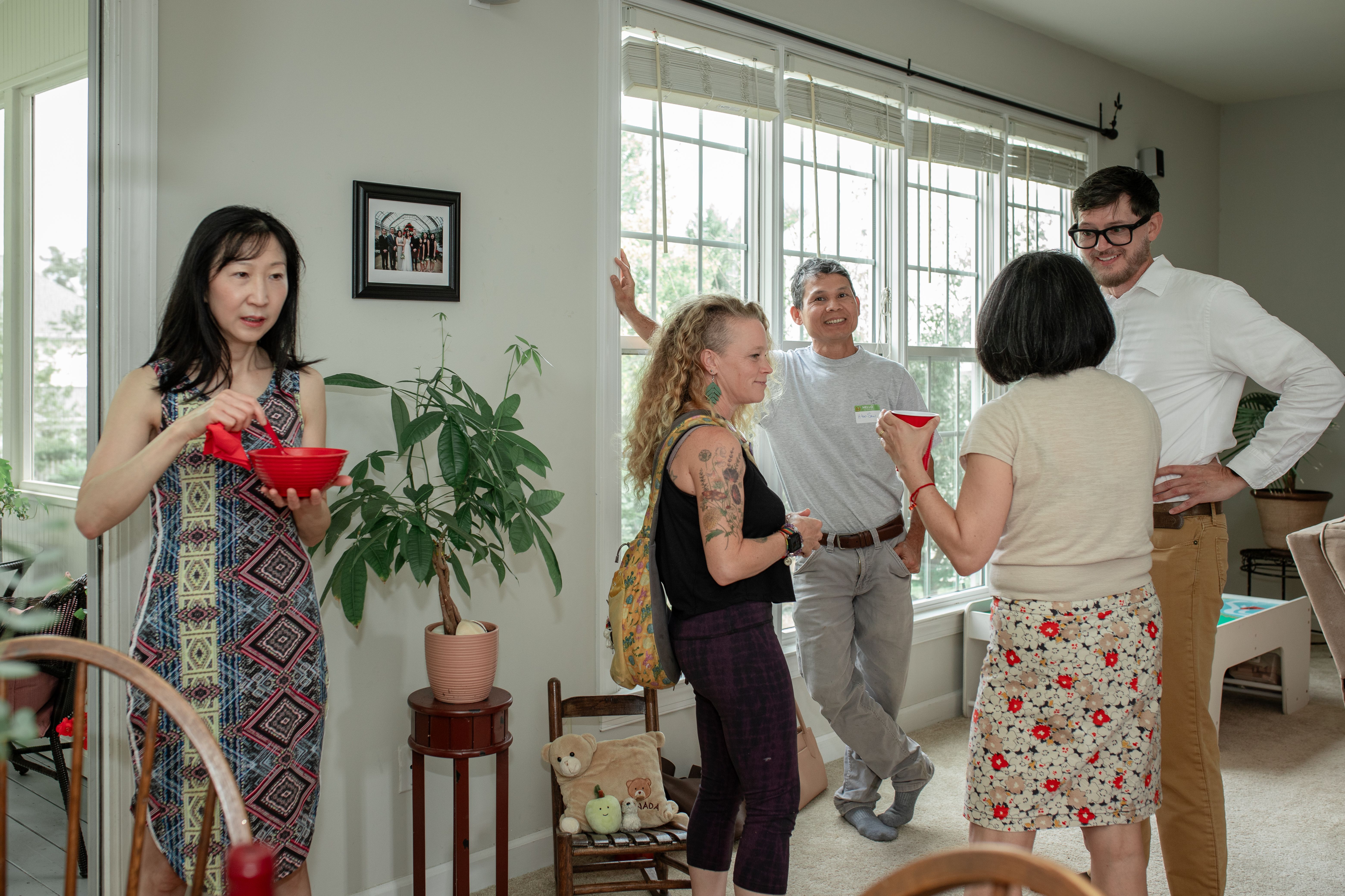参加了这次活动的,不仅有WAVES成员Lily Chen,林宝华, Emma Niu,方琦,Krystal Zhang,Yan Wu,Lily Liu,还有来自不同领域的嘉宾,包括北卡华人联合会(CAFA)的杨建平,北卡维克郡Poll center的Thomas Ray,MOVE NC的穆淑云,Karen社区农场的Jenn Sanford,Htoo Saw Ywa,登峰学园的朱墨轩等等。大家通过谈话增进了解,探讨未来如何更好地互相支持与合作。
