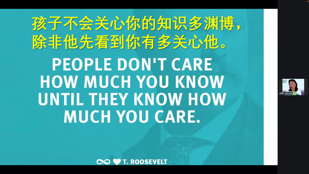 Finally, as a mom and an educator, I would like to reach out to parents who struggle at home at this moment. Through events like this UCA Waves Webinar, I hope you see that you are not alone. Dr. Xie’s Webinar “Learn and Grow in Relationships” is a treasure trove that we can visit and revisit many times to refocus our attention on growth in relationships. I will hand copy the quotes in her Webinar and read the books that she suggests.