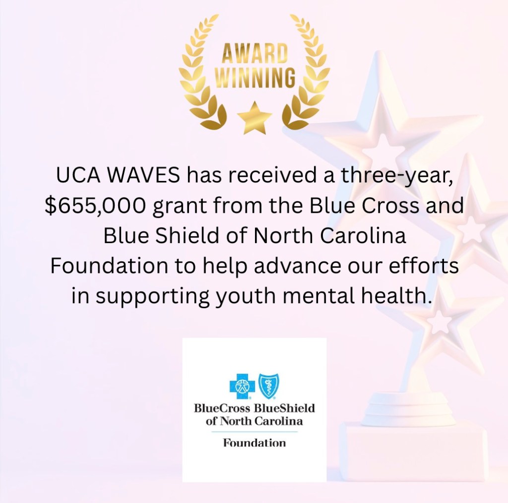 We are thrilled to announce that UCA WAVES has received a three-year, $655,000 grant from the Blue Cross and Blue Shield of North Carolina Foundation to help advance our efforts in supporting youth mental health.