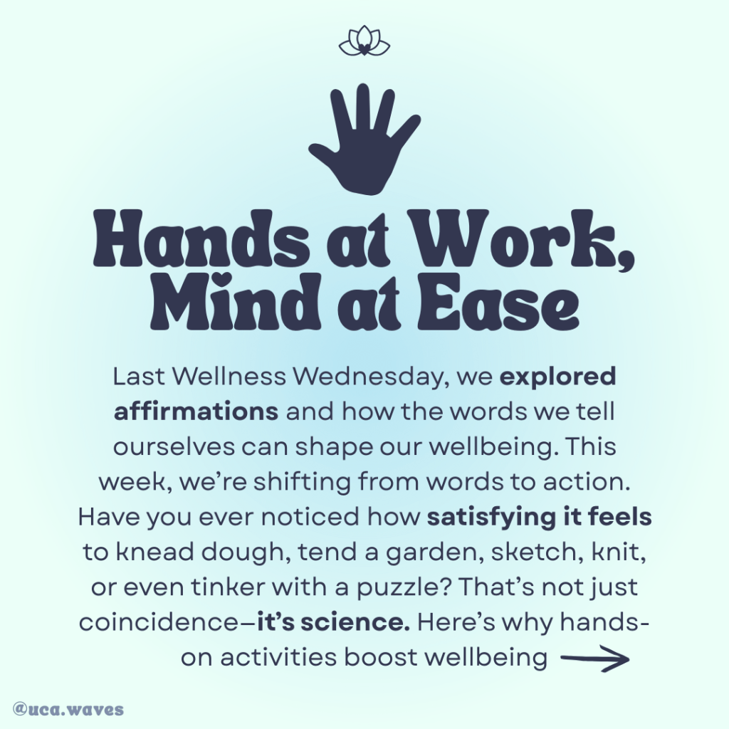 Last Wellness Wednesday, we explored affirmations and how the words we tell ourselves can shape our wellbeing. This week, we’re shifting from words to action. Have you ever noticed how satisfying it feels to knead dough, tend a garden, sketch, knit, or even tinker with a puzzle? That’s not just coincidence—it’s science. Here’s why hands-on activities boost happiness ⬇️