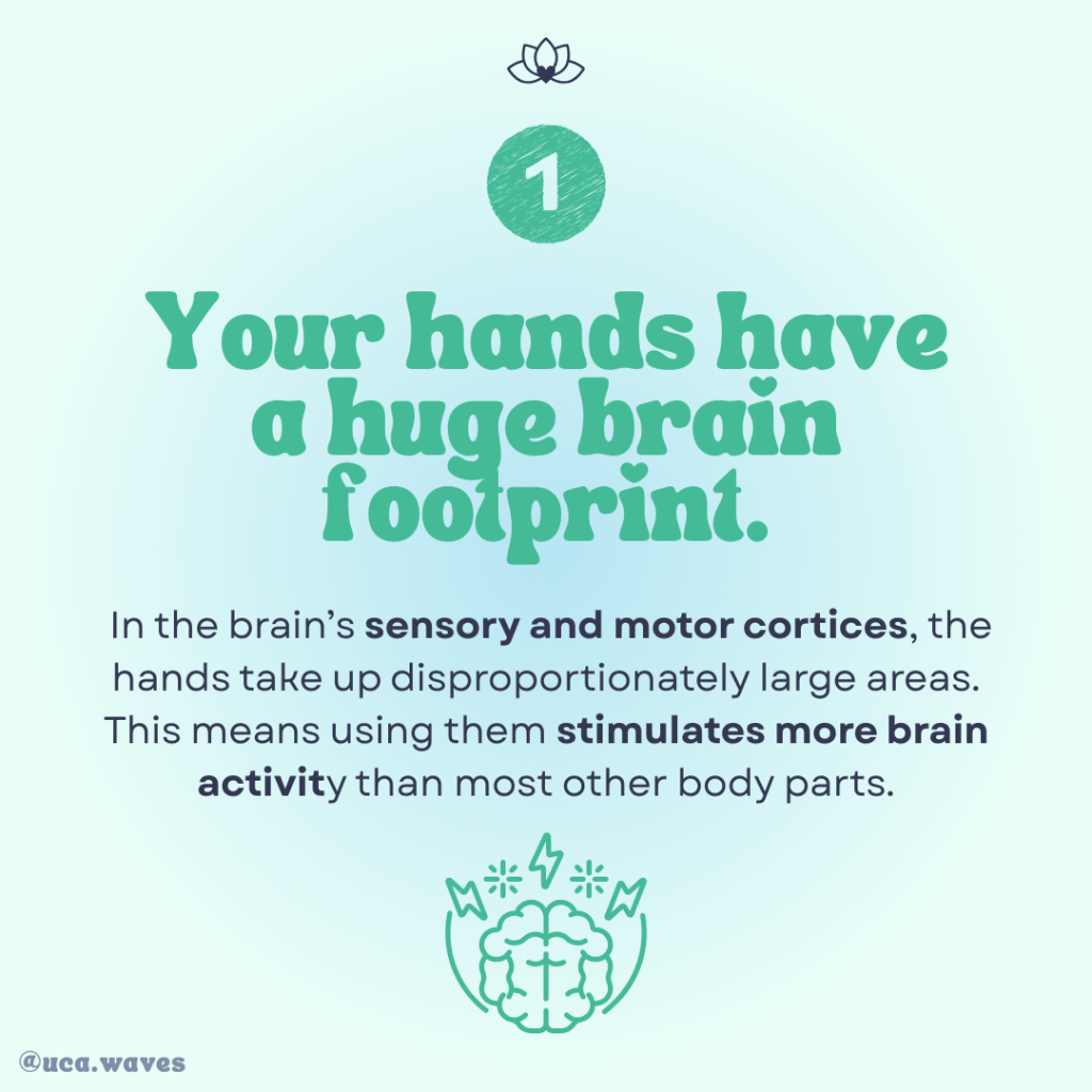 In the brain’s sensory and motor cortices, the hands take up disproportionately large areas. This means using them stimulates more brain activity than most other body parts.