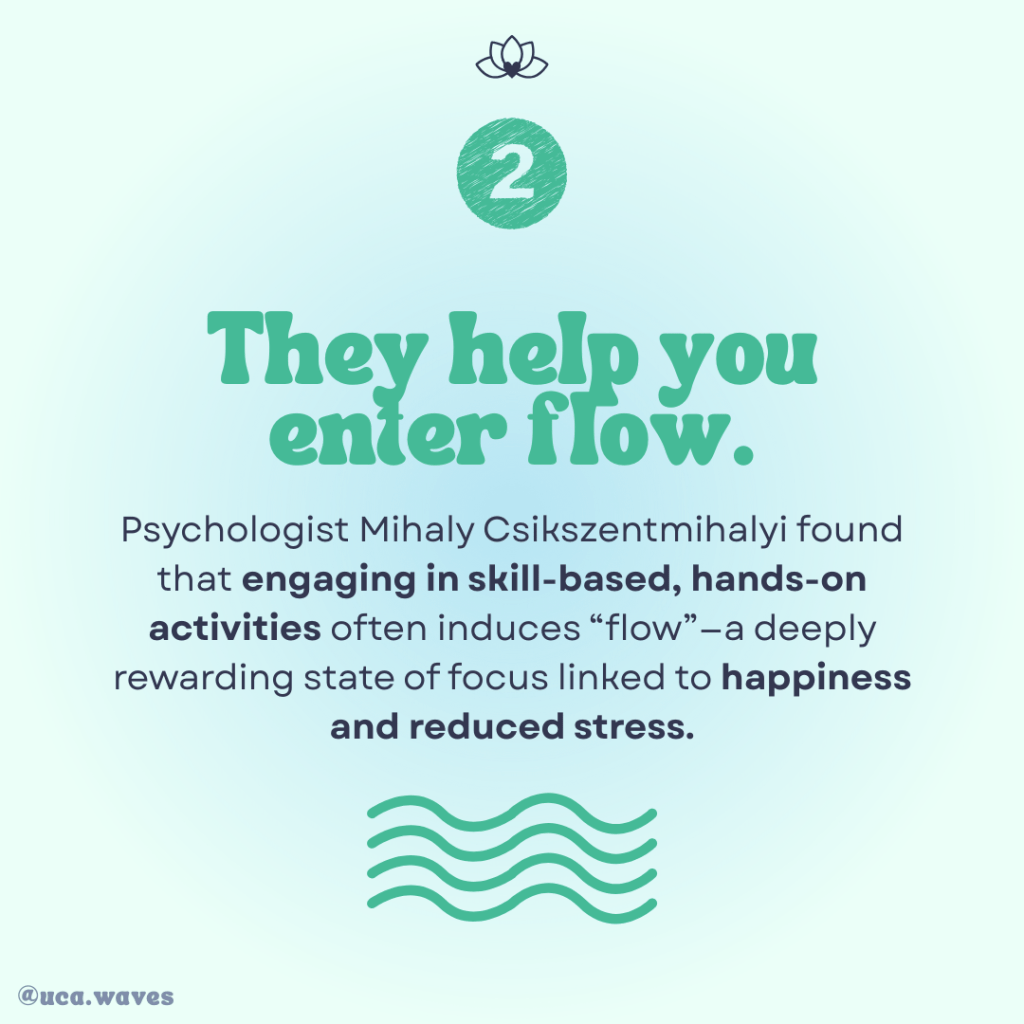 Psychologist Mihaly Csikszentmihalyi found that engaging in skill-based, hands-on activities often induces “flow”—a deeply rewarding state of focus linked to happiness and reduced stress.