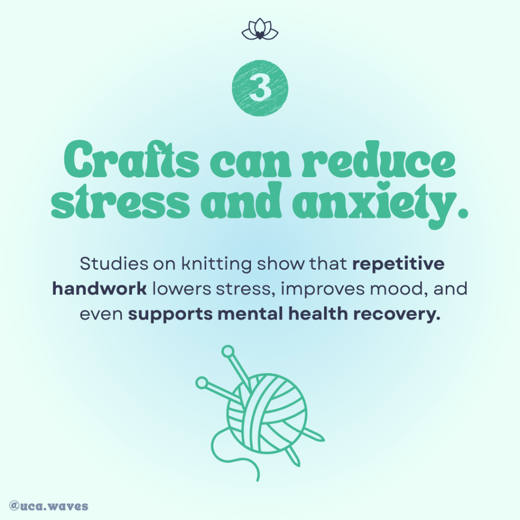 Studies on knitting show that repetitive handwork lowers stress, improves mood, and even supports mental health recovery.