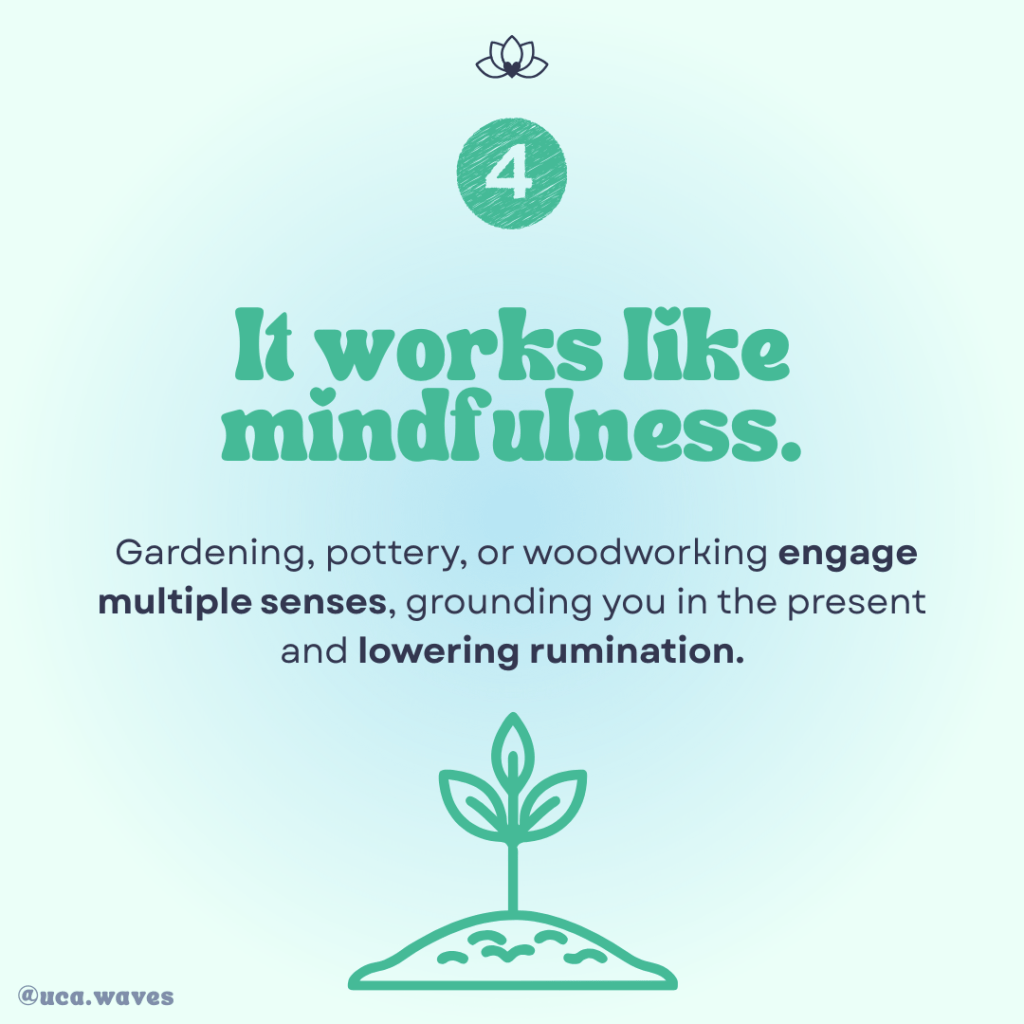 Gardening, pottery, or woodworking engage multiple senses, grounding you in the present and lowering rumination.