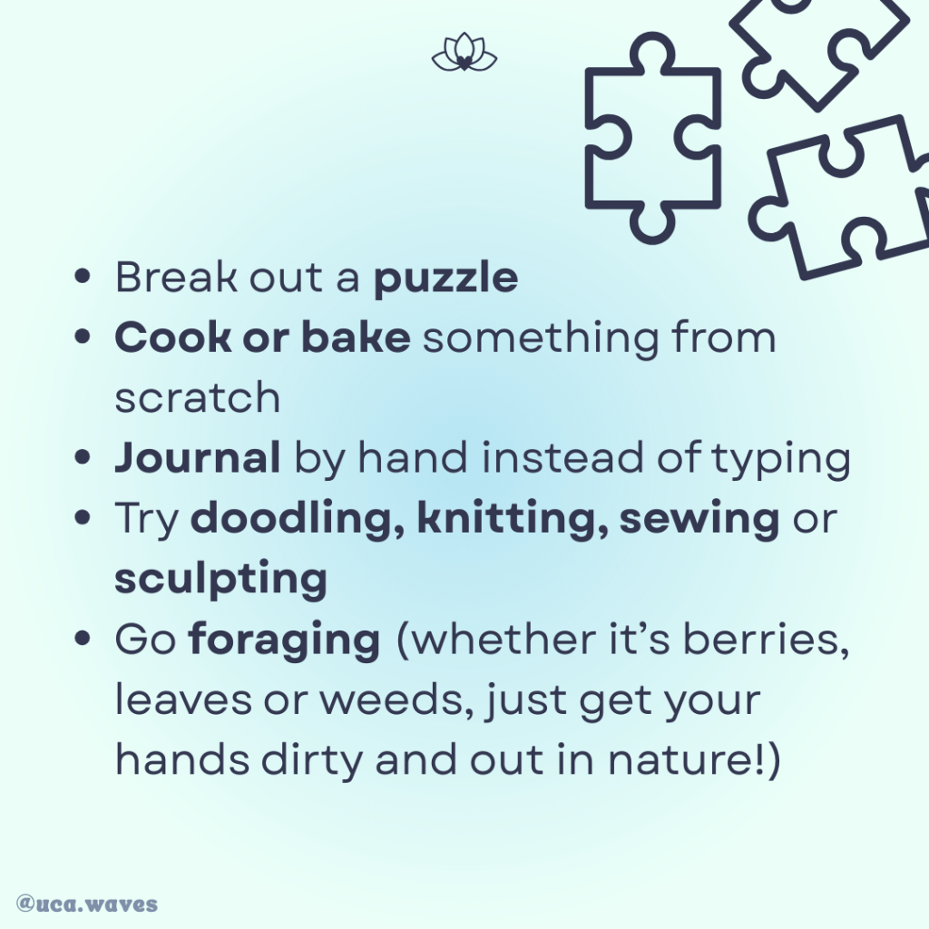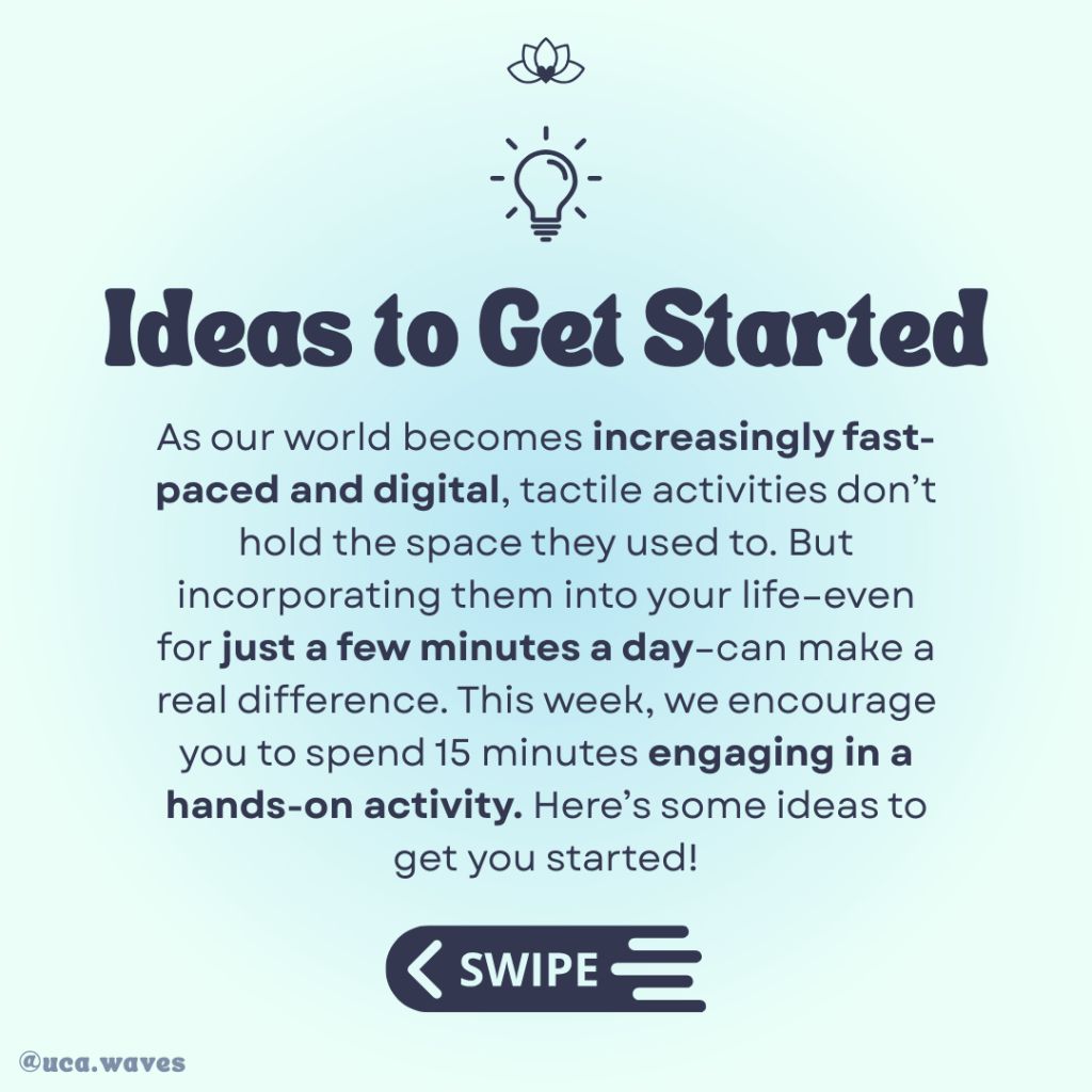 As our world becomes increasingly fast-paced and digital, tactile activities don’t hold the space they used to. But incorporating them into your life–even for just a few minutes a day–can make a real difference. This week, we encourage you to spend 15 minutes engaging in a hands-on #activity. Here’s some ideas to get you started!