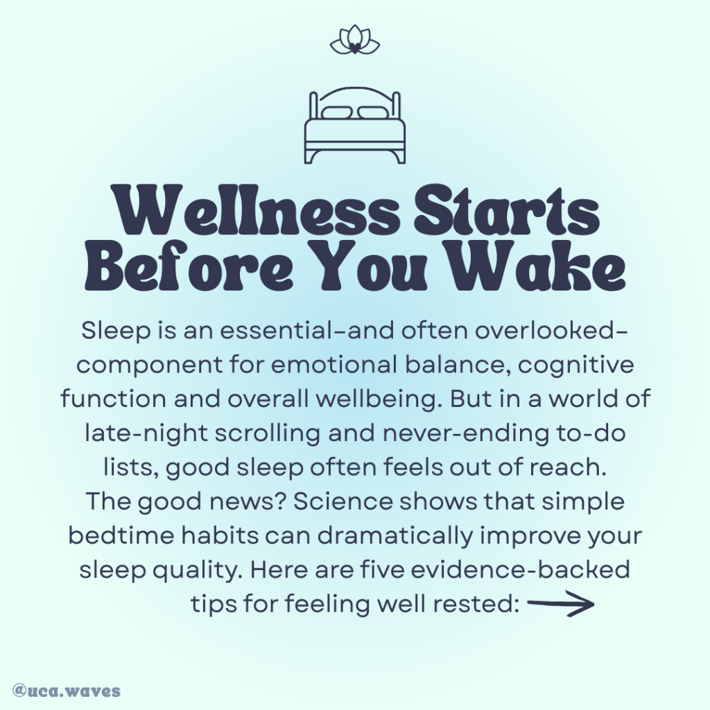 Last Wellness Wednesday, we explored how getting hands-on can bring happiness. This week, we’re talking about something just as vital for your mental health: sleep. Sleep is an essential–and often overlooked–component for emotional balance, cognitive function and overall wellbeing. But in a world of late-night scrolling and never-ending to-do lists, good sleep often feels out of reach.
