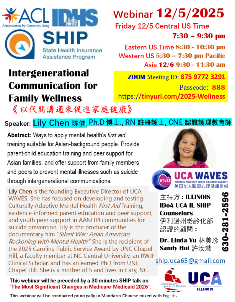 WAVES is continuing to expand our focus on supporting Asian American seniors and their families💙 Tonight, our Executive Director Lily Chen will be speaking on Intergenerational Communication for Family Wellness, sharing culturally adaptive strategies for mental health support across generations. Here’s everything you need to know:
