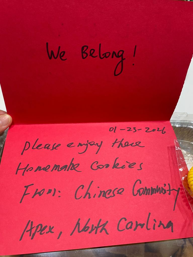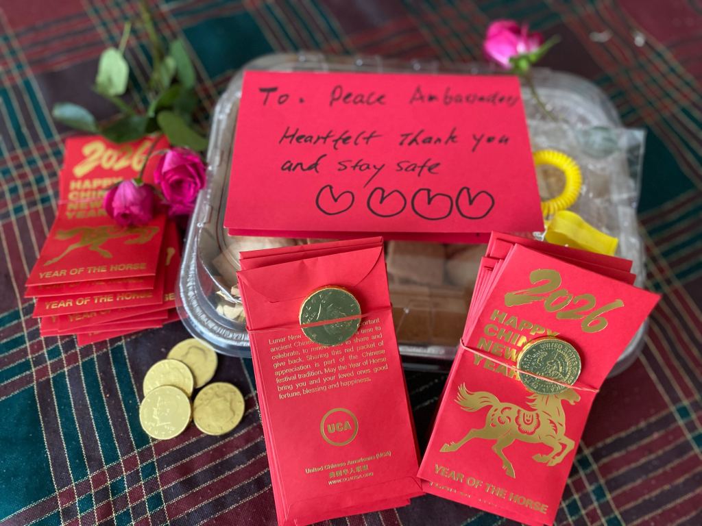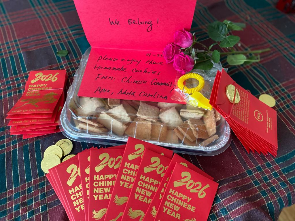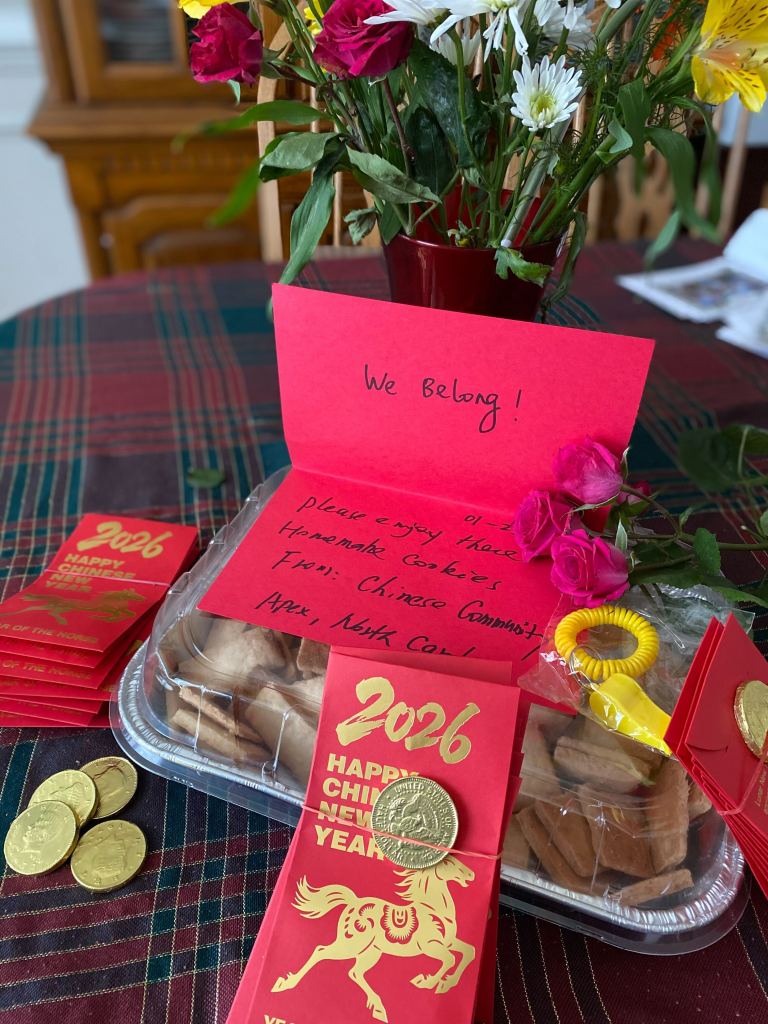 We were honored to share homemade cookies baked by our team member, Laura, and red envelopes filled with chocolate gold coins to symbolize good luck and blessings for the Lunar New Year. We wish them all the best on their journey, and hope they feel our solidarity in their mission.
