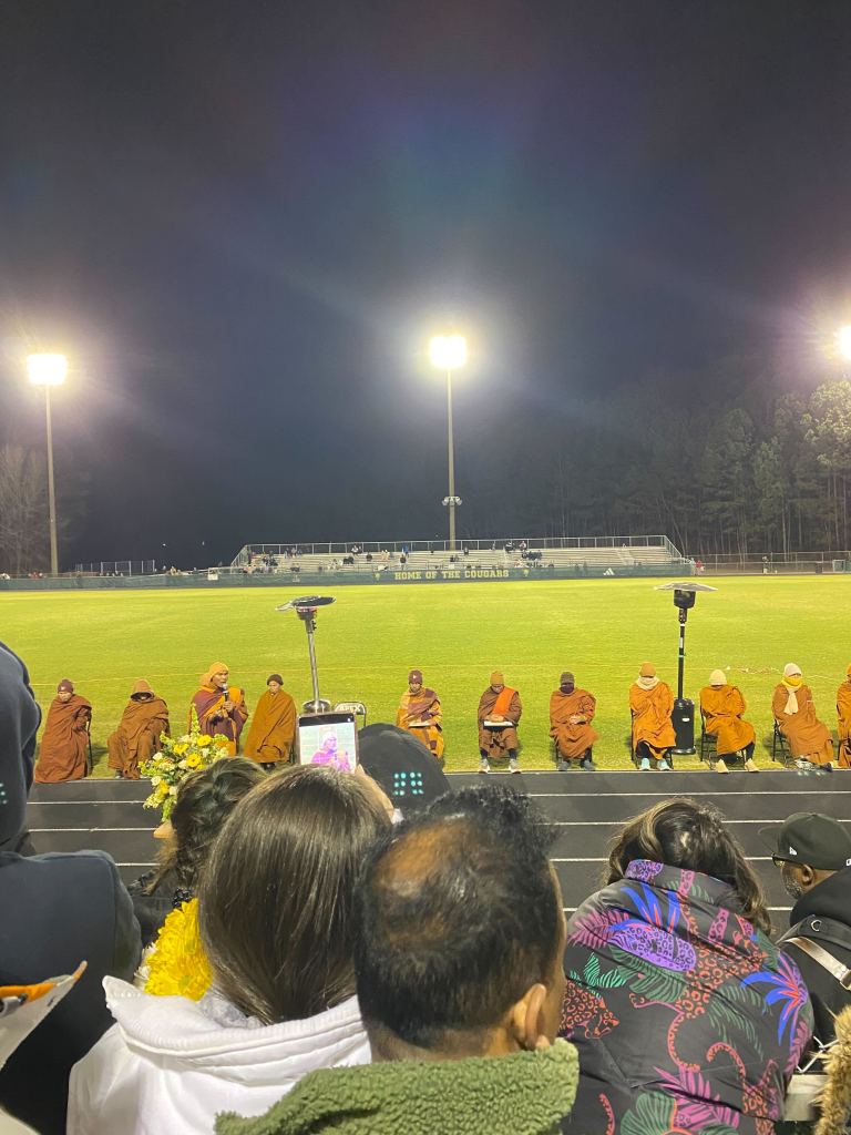 Friday night, WAVES had the honor of connecting with the Buddhist monks participating in the Walk for Peace, a long-distance walking pilgrimage led by monks to promote peace, compassion, unity, and mindfulness as they travel across communities. The monks walk slowly and mindfully, engaging with people they meet and offering symbolic blessings like simple bracelets to remind others of peace and presence.
