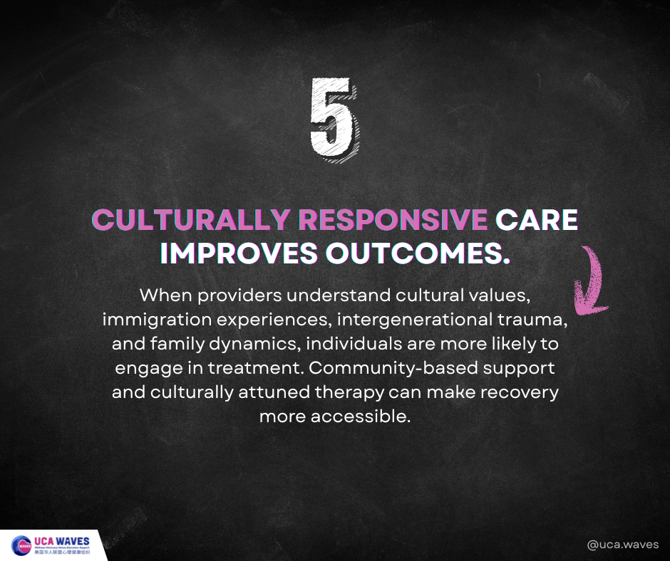 When providers understand cultural values, immigration experiences, intergenerational trauma, and family dynamics, individuals are more likely to engage in treatment. Community-based support and culturally attuned therapy can make recovery more accessible.