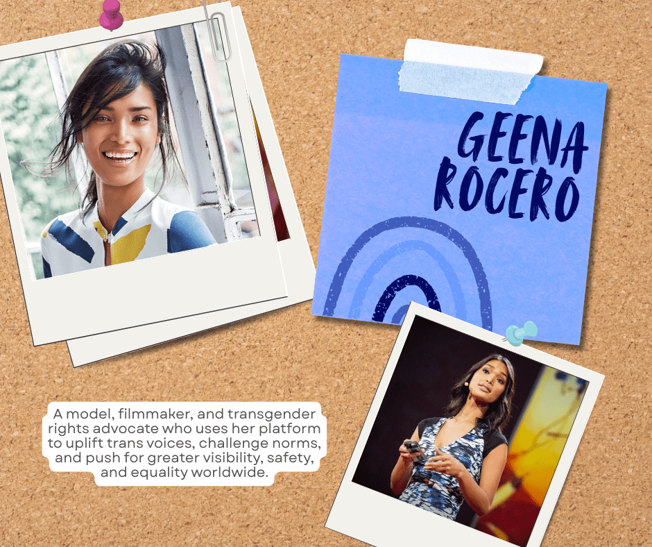 - Geena Rocero: A model, filmmaker, and transgender rights advocate who uses her platform to uplift trans voices, challenge norms, and push for greater visibility, safety, and equality worldwide.