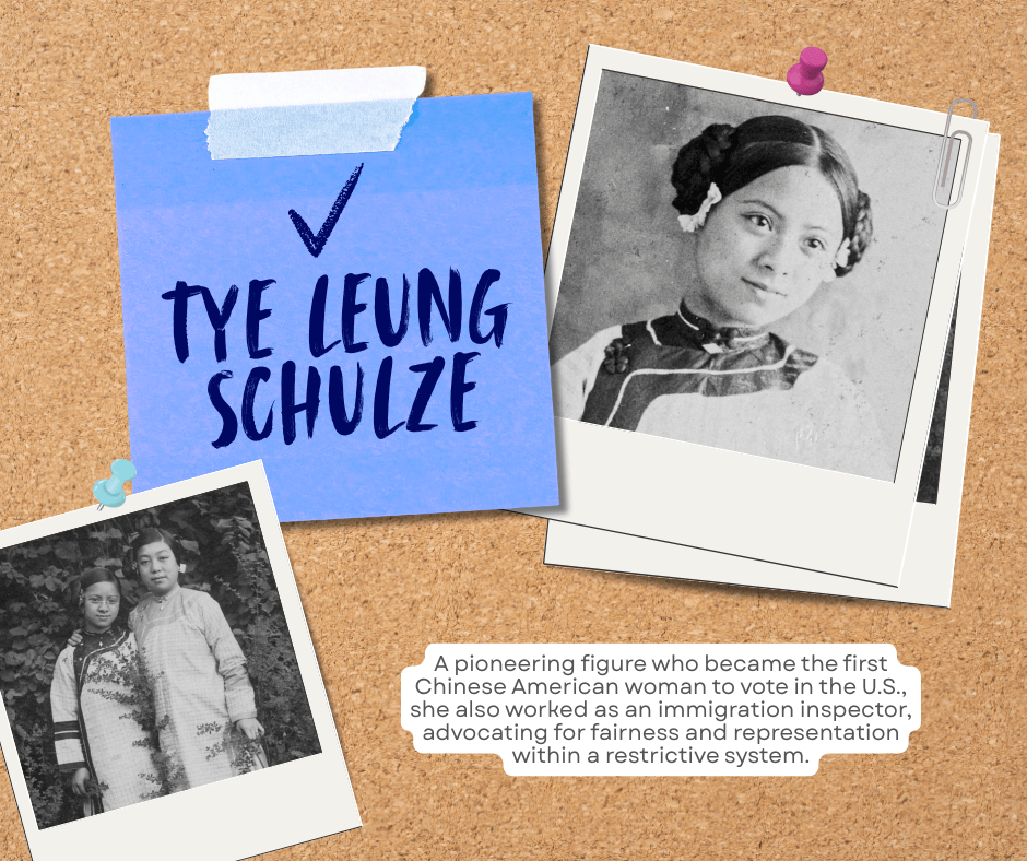 - Tye Leung Schulze: A pioneering figure who became the first Chinese American woman to vote in the U.S., she also worked as an immigration inspector, advocating for fairness and representation within a restrictive system.