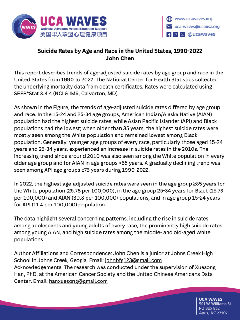 This research, led by high school student John Chen with guidance from the American Cancer Society and UCA Data Center, underscores the urgent need for youth-focused, culturally grounded mental health solutions.