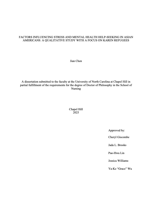 To better understand mental health needs in Asian American communities, this study explores the factors that influence stress and help-seeking behaviors, with a focus on Karen refugee families.